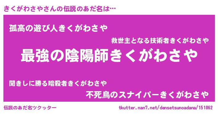 | 意味不明あだ名 | 『住所不定無職きくがわさや(98歳)』 |