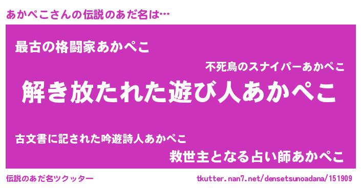 | ヒーロー風カッコイイあだ名 | 『幻影騎士アカ』『ウルトラ戦士アカペコ』 |