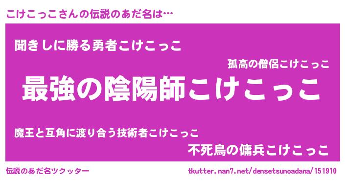 | 意味不明あだ名 | 『住所不定無職こけこっこ(84歳)』 |
