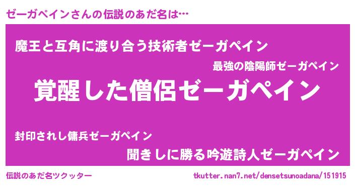 | ヒーロー風カッコイイあだ名 | 『炎刃騎士ゼー』『愛の使者ゼーガペイン』 |