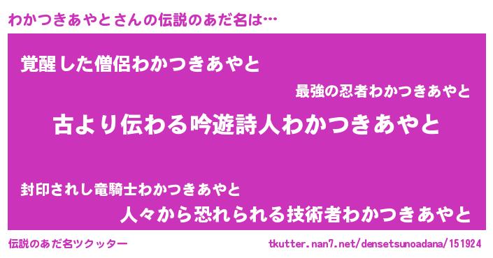 | 意味不明あだ名 | 『永久保存わかつきあやと』 |
