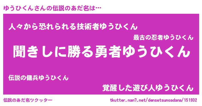 | 意味不明あだ名 | 『住所不定無職ゆうひくん(91歳)』 |