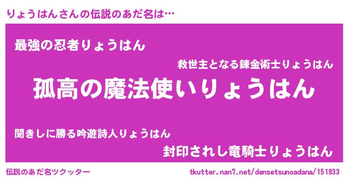 | 男性向けラノベタイトル風あだ名 | 『魔法科高校のりょうはん』 |