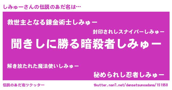 | ヒーロー風カッコイイあだ名 | 『ネオシミュー』『究極戦士シミュー』 |