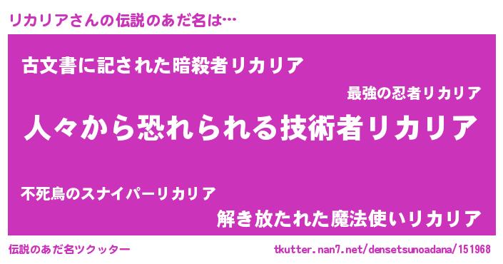 | ヒーロー風カッコイイあだ名 | 『友情の使者リカリア』『仮面リカダー』 |