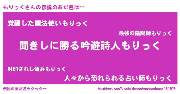 | 意味不明あだ名 | 『永久保存もりっく』『自称もりっく』 |