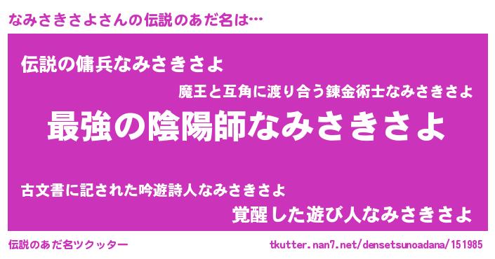 | 意味不明あだ名 | 『なみさきさよフォーエバー』 |
