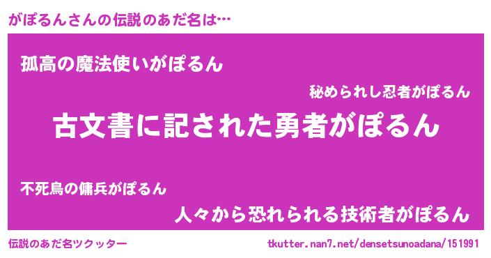 | 意味不明あだ名 | 『永久保存がぽるん』『自称がぽるん』 |
