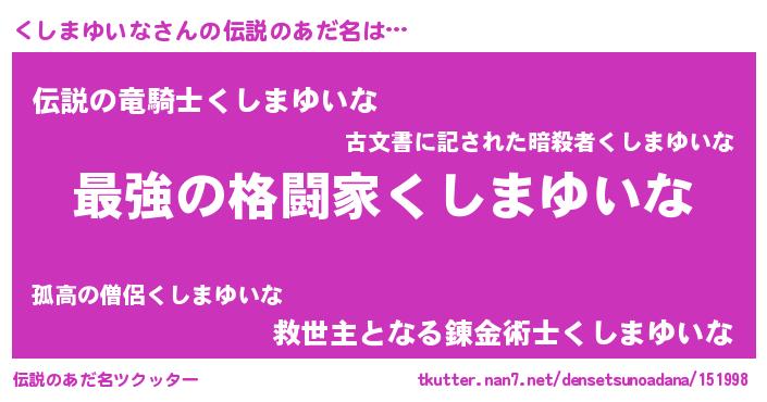 | 女子向けラノベタイトル風あだ名 | 『くしまゆいなストレイドッグス』 |