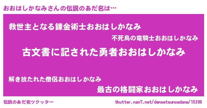 | 男性向けラノベタイトル風あだ名 | 『おおはしかなみに滅ぼされるだけの簡単なお仕事です』 |