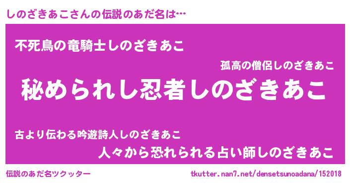 | 意味不明あだ名 | 『自称しのざきあこ』 |