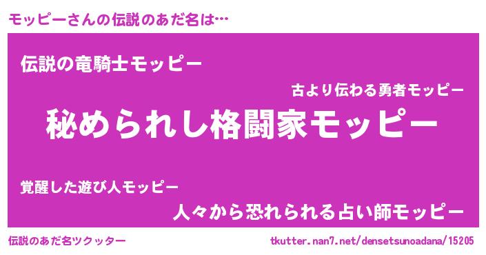 | 意味不明あだ名 | 『モッピーフォーエバー』『自称モッピー』 |