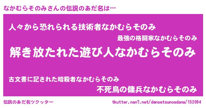 | 意味不明あだ名 | 『とにかく怪しいなかむらそのみ』 |