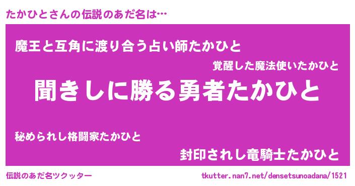 | 男性向けラノベタイトル風あだ名 | 『たかひとという概念が存在しない退屈な世界 』 |