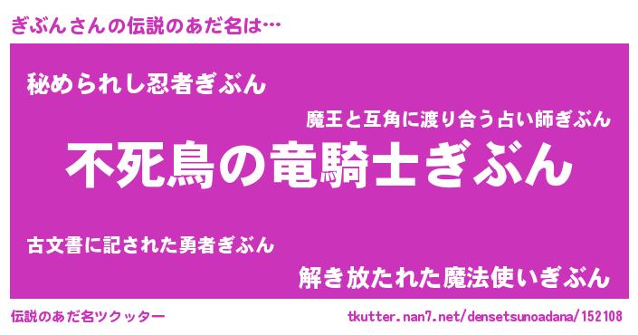 | 男性向けラノベタイトル風あだ名 | 『転生したらぎぶんだった件』 |