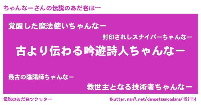 | 意味不明あだ名 | 『永久保存ちゃんなー』 |