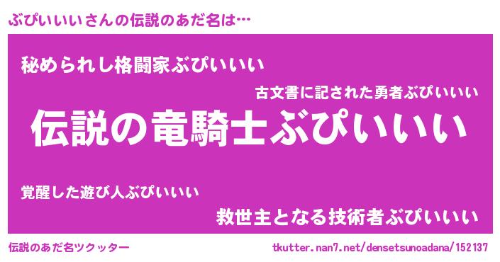 | ヒーロー風カッコイイあだ名 | 『スーパーブピイイイ』『仮面ブピダー』 |