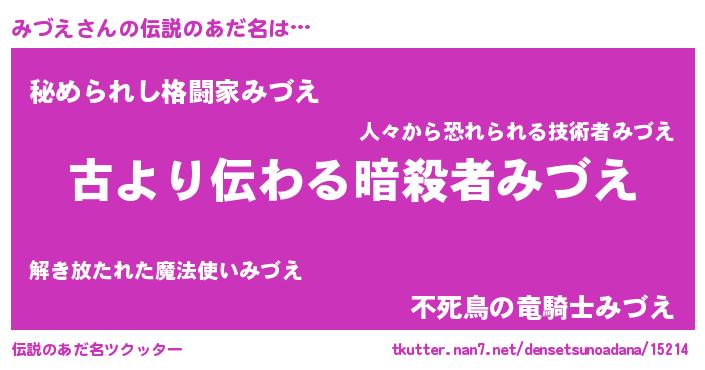 | ファンタジー風あだ名 | 『ミヅディッシュ』『エターナルミヅエー』 |