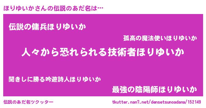 | ヒーロー風カッコイイあだ名 | 『正義の使者ほりゆいか』『仮面ホリダー』 |