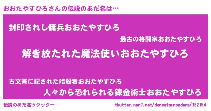 | 男性向けラノベタイトル風あだ名 | 『転生したらおおたやすひろだった件』 |
