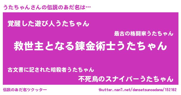 | ヒーロー風カッコイイあだ名 | 『慈愛の使者うたちゃん』『天弓騎士ウタ』 |