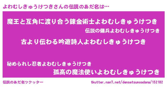 | 意味不明あだ名 | 『永久保存よわむしきゅうけつき』 |
