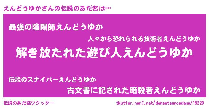 | 意味不明あだ名 | 『とにかく怪しいえんどうゆか』 |