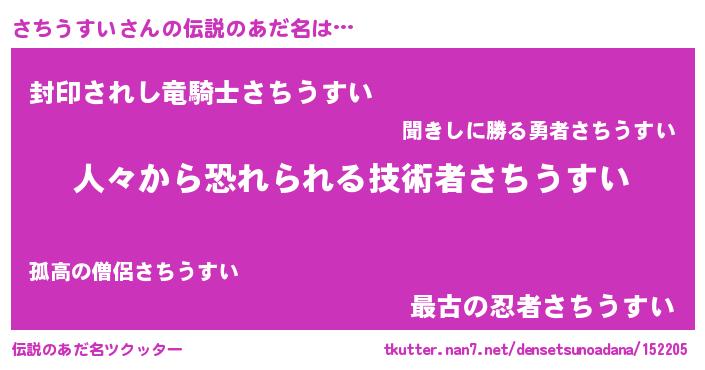 | ヒーロー風カッコイイあだ名 | 『正義の使者さちうすい』 |
