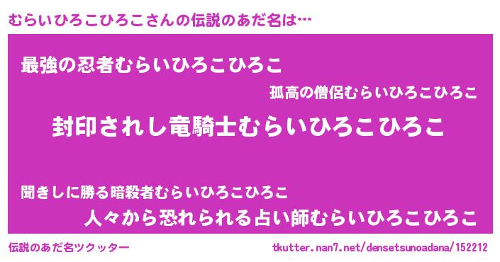| ヒーロー風カッコイイあだ名 | 『スーパームライヒロコヒロコ』 |