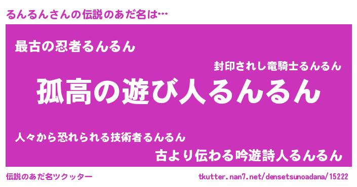 | ヒーロー風カッコイイあだ名 | 『暗黒騎士ルン』『ウルトラるんるんマン』 |