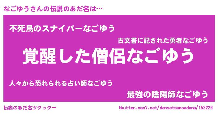 | 意味不明あだ名 | 『住所不定無職なごゆう(14歳)』 |