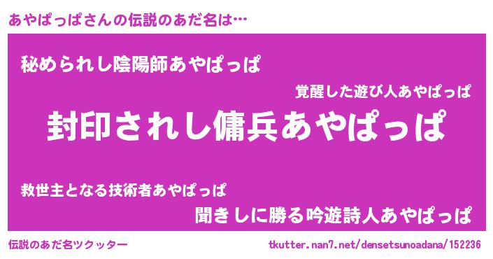 | 胡散臭い通販商品みたいなあだ名 | 『億万長者になれる水晶球…その名も「あやぱっぱ」』 |