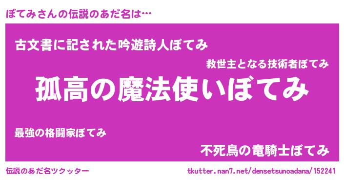 | 意味不明あだ名 | 『とにかく怪しいぼてみ』『自称ぼてみ』 |