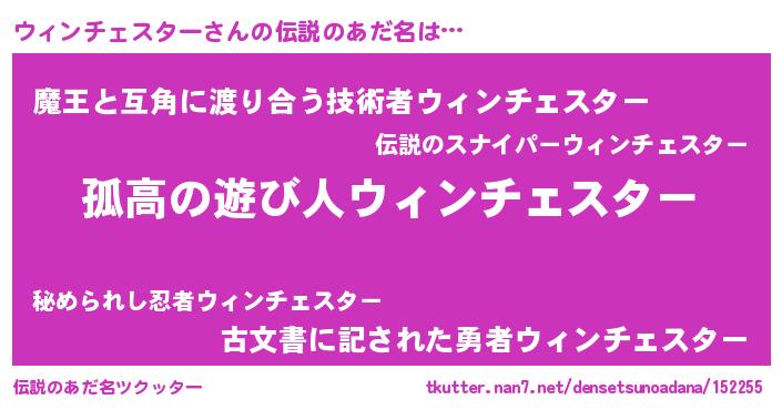 | 男性向けラノベタイトル風あだ名 | 『はたらくウィンチェスターさま!』 |
