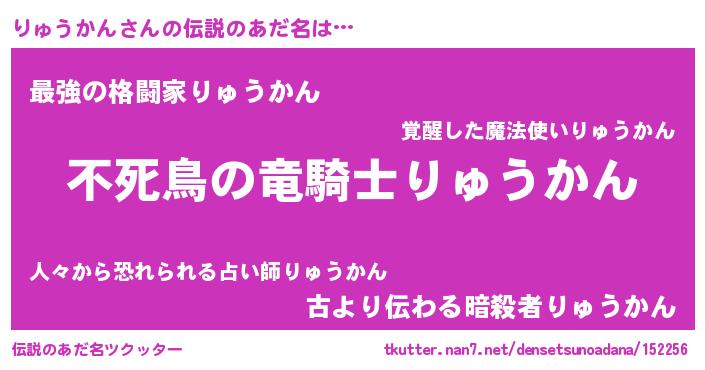 | ヒーロー風カッコイイあだ名 | 『スーパーリュウカン』『ネオリュウカン』 |
