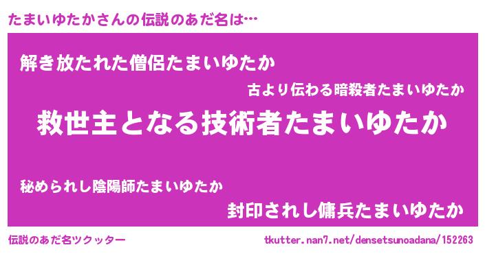 | ポケモン風あだ名 | 『タックウザ』『ヒタマイユタカ』 |