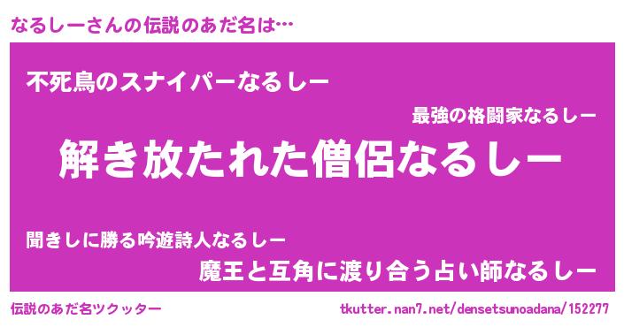 | 意味不明あだ名 | 『自称なるしー』『めかぶ科なるしー属』 |
