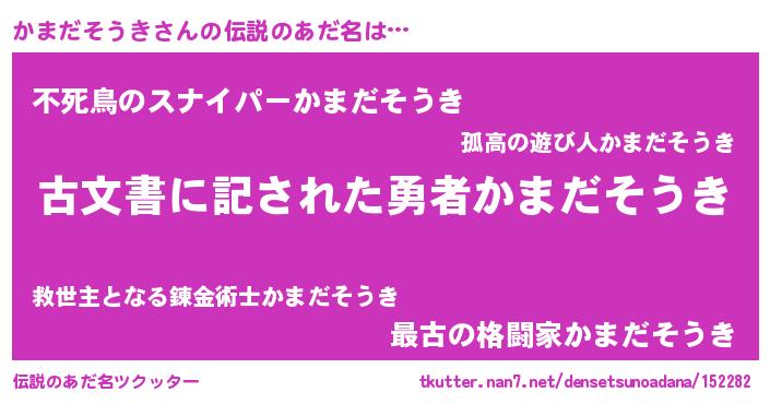 | 意味不明あだ名 | 『住所不定無職かまだそうき(98歳)』 |
