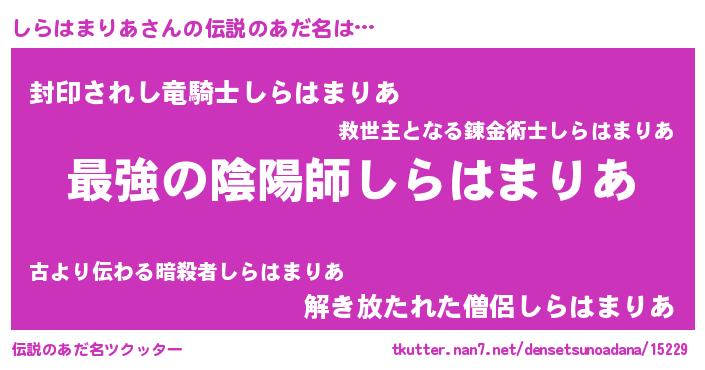 | 意味不明あだ名 | 『しらはまりあフォーエバー』 |