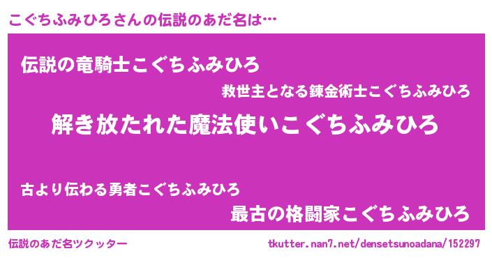 | 男性向けラノベタイトル風あだ名 | 『Re:こぐちふみひろから始める異世界生活』 |