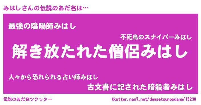 | ヒーロー風カッコイイあだ名 | 『幻影騎士ミハ』『ウルトラみはしマン』 |