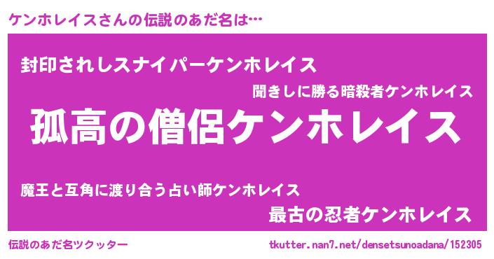 | 女子向けラノベタイトル風あだ名 | 『ケンホレイスなんてお断りですっ。』 |