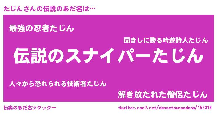 | 意味不明あだ名 | 『自称たじん』『しいたけ科たじん属』 |