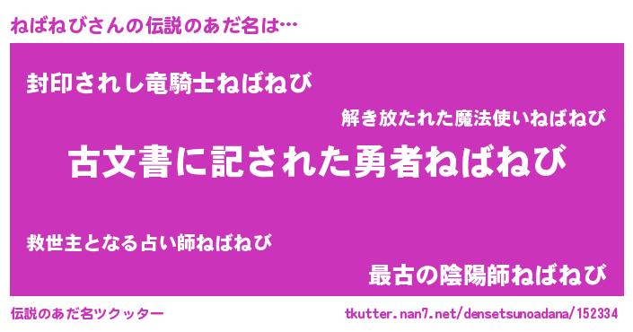 | 意味不明あだ名 | 『永久保存ねばねび』『自称ねばねび』 |