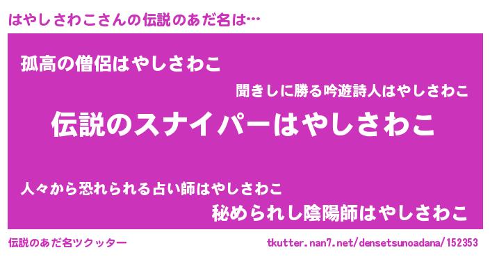 | 胡散臭い通販商品みたいなあだ名 | 『必ず成功する霊験あらたかなお札…その名も「はやしさわこ」』 |