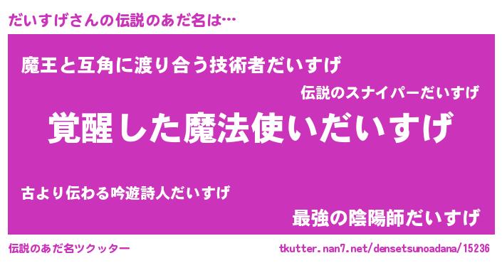| 意味不明あだ名 | 『とにかく怪しいだいすげ』 |