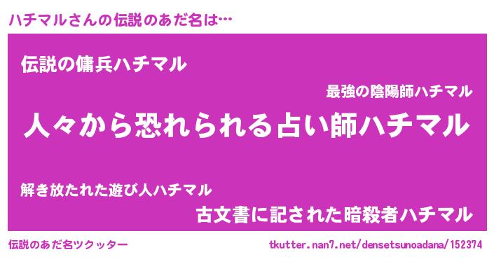 | 意味不明あだ名 | 『住所不定無職ハチマル(47歳)』 |