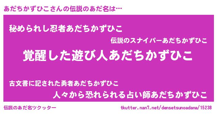 | 男性向けラノベタイトル風あだ名 | 『あだちかずひこの嫁は女の子じゃないと思った?』 |