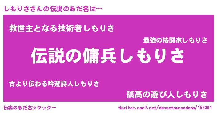 | 意味不明あだ名 | 『住所不定無職しもりさ(39歳)』 |