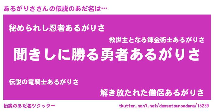 | ヒーロー風カッコイイあだ名 | 『ネオアルガリサ』『最強戦士アルガリサ』 |